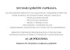 Dwudniowe warsztaty dla związków małżeńskich i małżeństw w kryzysie przez Ks. Andrzej Kołodziejczyk · Opublikowano 10 września 2025 · Zaktualizowano 10 września 2025 Tweet