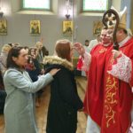 W dalszej części wizytacji biskup uczestniczył we mszy św. o godz. 12.15. W drzwiach kościoła przywitały go dzieci, które przebrane za świętych, najczęściej swoich patronów, pielgrzymowały z rodzicami i panią katechetką na mszę św. przez cały Wawrów. W słowie wygłoszonym do nas Biskup nakreślił bliską mu wizję Kościoła – Kościoła, jako Rodziny. Podziękował za to, że jako wspólnota jesteśmy otwarci na potrzeby innych, uczestnicząc w ten sposób w misyjności Kościoła – wspierając naszych misjonarzy, nie tylko siostrę Hannę, ale także wszystkich wysyłanych przez Kościół w Polsce. Hierarcha podziękował także za materialny wkład w utrzymanie działalności biskupa, naszego Seminarium oraz za troskę o rozwój naszej parafii. Zachęcał nas do modlitwy o powołania kapłańskie, dzieląc się niepokojem o spadek powołań kapłańskich i zakonnych.