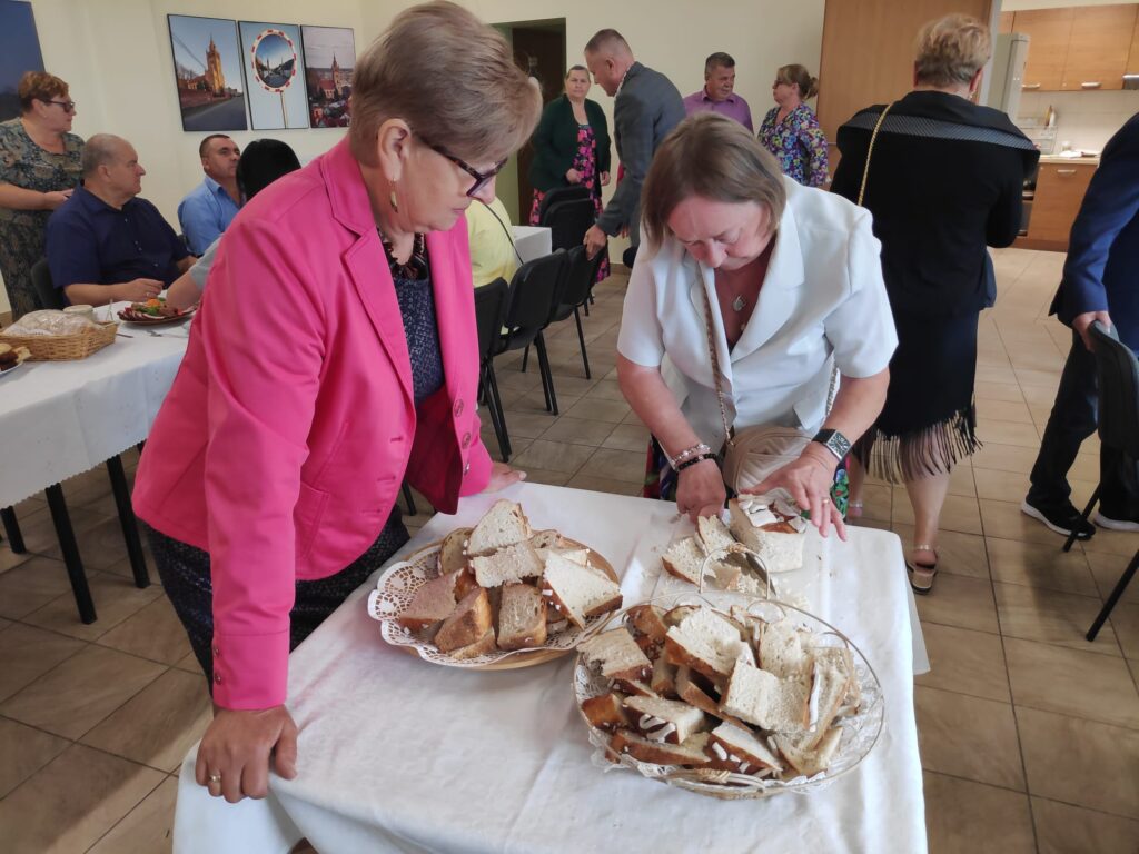 W słowie Bożym wygłoszonym przez księdza proboszcza usłyszeliśmy, że dożynki nie mogą być czasem propagandy sukcesu. Wręcz odwrotnie – dożynki mówią o ciężkiej pracy rolnika, pszczelarza, sadownika itp. – pracy, która wymaga pokory, uzmysławia, że wzrost to nie napędzanie nawozami, ale przyjmowanie z ręki Boga tego co jesteśmy w stanie przyjąć w postaci dobrej pogody, słońca, deszczu, wiatru i wielu innych sprzyjających darów. To właśnie dlatego tak naprawdę dożynki mocno związane są z dniami krzyżowymi, podczas których przez trzy dni prosimy Pana Boga o dobre plony naszej ziemi, o to abyśmy mogli dzielić się chlebem z innymi. To także czas, gdy w czasie suszy wspólnie modlimy się o deszcz, zawierzamy trudną pracę rolnika i wszystkich spożywających codzienny chleb. Dożynki to także czas dorastania człowieka do odkrywania, że dobry jest Bóg, że z jego ręki otrzymujemy wszystko co jest nam potrzebne do życia. To czas, kiedy pytamy się czy ziarno słowa zasiane w nasze serca wydaje właściwe plony. Symbolem dożynek jest Wieniec dożynkowy. Dziękuję wszystkim, którzy przyczynili się do tego, że tegoroczny Wieniec pięknie wpleciony, zajął pierwsze miejsce w gminie i powiecie oraz otrzymał wyróżnienie na poziomie wojewódzkim. Zachęcam do obejrzenia naszej galerii.
