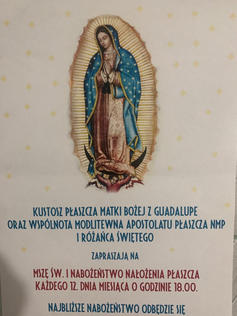 Wszystkich czcicieli NMP z Gaudalupe zapraszamy na mszę św. w najbliższy piątek 12 września o godzinie 18.00 do kościoła parafialnego w Wawrowie. Po mszy św. nastąpi wystawienie...