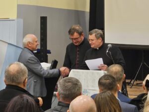 Obchody 25-lecia powstania naszej parafii odbyły się w sobotę 16 listopada 2024r. Rozpoczęliśmy mszą św. o godz. 16 w kościele w Wawrowie, a następnie przeszliśmy do sali gimnastycznej Szkoły Podstawowej w Wawrowie, gdzie przekazane zostały podziękowania, wspomnienia i część artystyczna, w której wystąpił Chór Santoccy Grodzianie, młodzież ze szkoły w Lipkach Wielkich oraz zespół Nowonarodzeni.