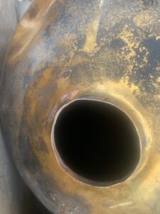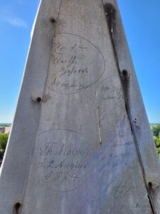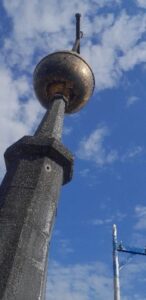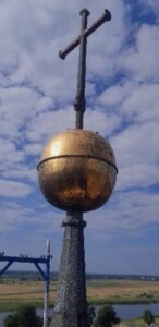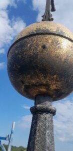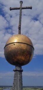 Remont odsłonił wojenne rany – ślady po kulach na kuli umieszczonej pod krzyżem.