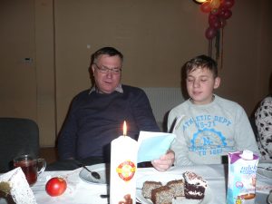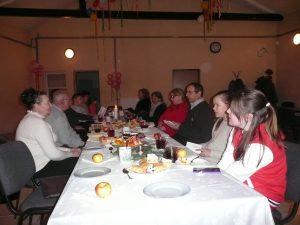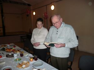 W tym roku, uczestniczących w spotkaniu było zdecydowanie mniej, z powodu złych warunków atmosferycznych, utrudniających dotarcie do świetlicy. Przy stole, nakrytym białym obrusem, który odzwierciedlał świąteczną atmosferę, zasiedli parafianie z Czechowa, reprezentujący młodsze i starsze pokolenie. Wieczór rozpoczęliśmy odczytaniem drugiego rozdziału Ewangelii wg św. Łukasza, opisującego narodzenie Jezusa w Betlejem. Wspólna modlitwa dziękczynna rozgrzała nasze serca, aby radośnie i z dużym entuzjazmem śpiewać kolędy na chwałę Pana. Każdy z uczestniczących w spotkaniu wylosował jednego świętego – patrona roku 2016, którego szczególnie będzie prosił o orędownictwo. Tego wieczoru, przy słodkim poczęstunku, nie zabrakło również wspólnych rozmów, które zawsze zbliżają nas do siebie i sprawiają, że czujemy się ze sobą dobrze.