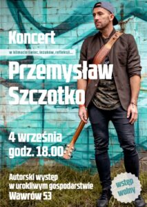 W sobotę 04.09 o godz. 18.00 w urokliwym zakątku Wawrowa możemy uczestniczyć w koncercie w wykonaniu pana Przemysława Szczotko.