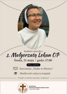 - W środę 21 maja o 17 w kawiarni Niebo w Mieście obok katedry zapraszamy na spotkanie autorskie z dominikanką s. Małgorzatą Lekan. Podczas spotkania będziemy mogli nabyć jej książki o kobiecości. Wstęp wolny.