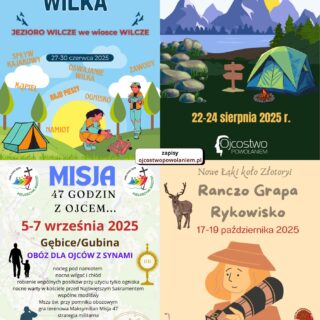 Katolickie Stowarzyszenie Ojcostwo Powołaniem zaprasza na weekendowe obozy pod namiotem dla ojców i ich dzieci: 27-30 czerwca 2025, Wilcze (150 miejsc, kończą się miejsca), ,,Z tatą oswoić...