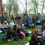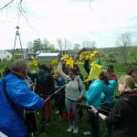 Po Eucharystii uczestniczyliśmy w grze terenowej, podczas której próbowaliśmy naśladować św. Stanisława Kostkę w jego drodze przez Alpy. Wśród zadań, które każda z grup miała do wykonania było m.in. rozpalenie ogniska, wykonanie haka górskiego oraz uszycie worka na wzór węzełka, z jakim, z jakim przebrany za żebraka Stanisław wędrował przez Alpy.