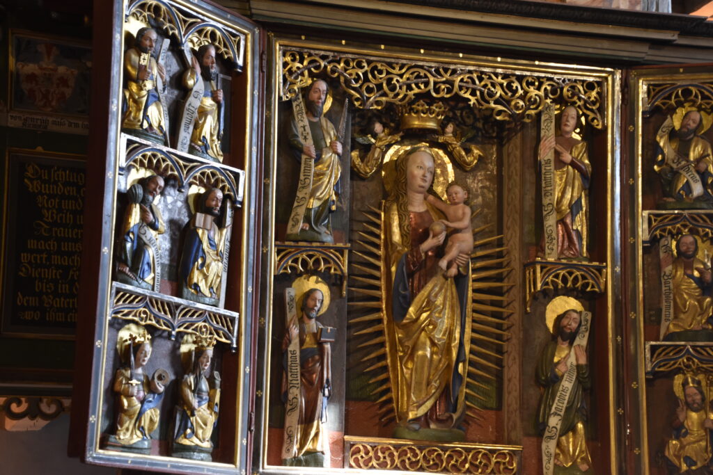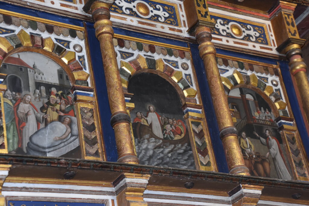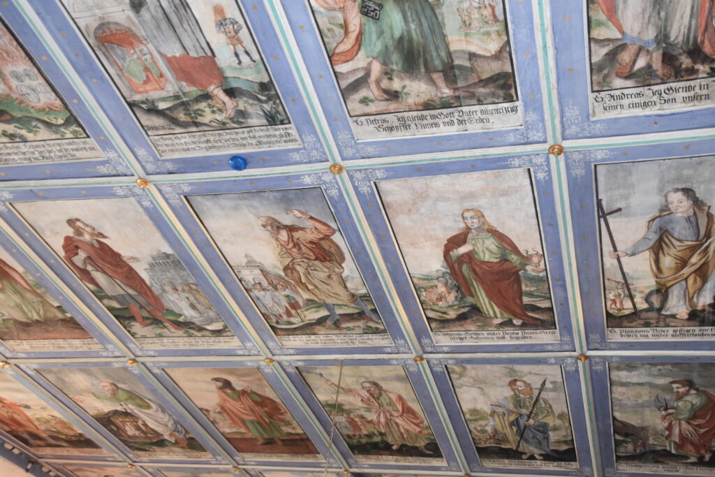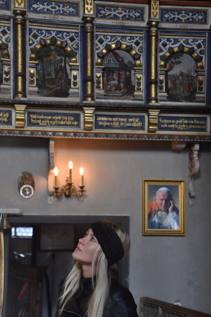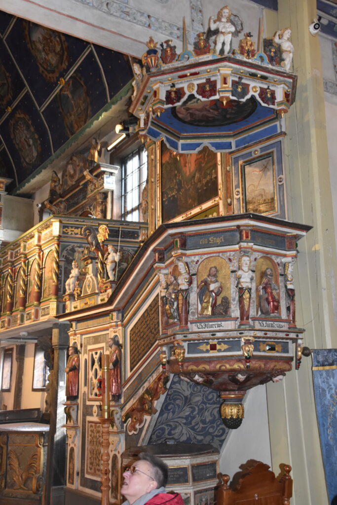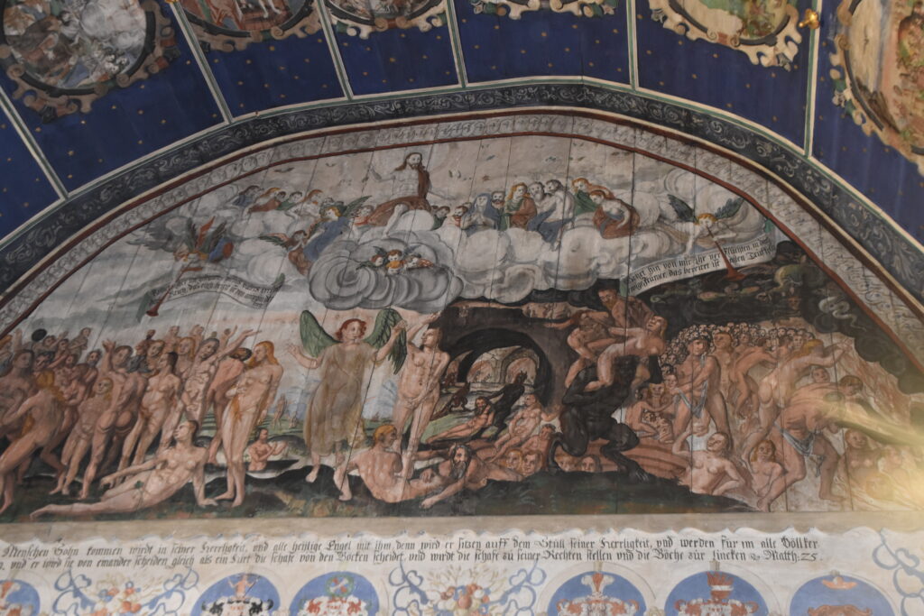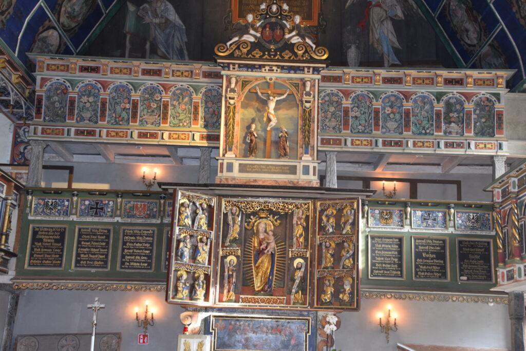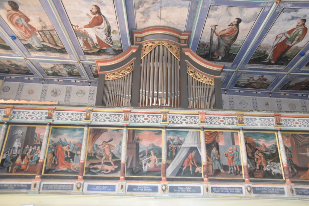 Najcenniejszym walorem artystycznym zabytku jest w pełni zachowana dekoracja malarska i snycerska wnętrza, dzięki której świątynię zalicza się do czołowych realizacji luterańskich doby reformacji w Europie Środkowowschodniej. 117 malowideł wkomponowanych w architekturę kościoła oraz opatrzonych 90 inskrypcjami, jest niezwykle cennych nie tylko z punktu widzenia historii sztuki. Wartościowe pod względem ikonograficznym realizacje, które charakteryzuje bogactwo tematów, motywów oraz wątków narracyjnych, stanowią również kompendium wiedzy na temat luterańskiej myśli religijnej. Świątynia posiada wysokiej klasy elementy wyposażenia wnętrza, m.in.: manierystyczną chrzcielnicę z 1581 r., ambonę z 1614 r. oraz gotycki ołtarz z ok. 1400 r. (rozbudowany w XVII w.). Włączenie w nowożytne wnętrze średniowiecznej nastawy ołtarzowej stanowi niezwykły dokument łączności duchowej i kulturowej dawnej parafii katolickiej i jej protestanckich sukcesorów.