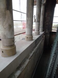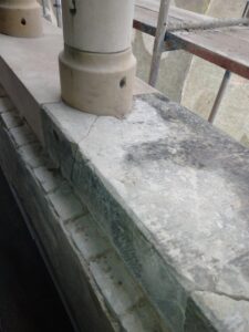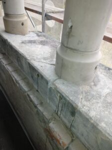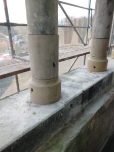 - scala wieże w miejscach pęknięć i uzupełnia wypłukaną deszczem zaprawę sojującą cegły