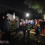 Święto Niepodległości jest jednym z tych dni, który łączy wszystkich rodaków. Także nasza społeczność spotkała się na mszy św. aby podziękować Panu Bogu za dar wolności, za osoby które na przestrzeni wieków poświęciły wiele, a nawet oddały życie, aby nasza Ojczyzna mogła na nowo zaistnieć i się rozwijać. Dziękując Panu Bogu na nowo zawierzyliśmy Mu dalsze dni i lata naszej codzienności prosząc dla nas wszystkich o ducha porozumienia, współpracy, odpowiedzialności za nasze dzisiaj i jutro. Prosiliśmy o ducha życzliwości, który jest zawsze potrzebny w naszych relacjach. Po mszy uczestniczyliśmy w happeningu patriotycznym, przygotowanym przez nasze Koło Gospodyń Wiejskich, śpiewając znane i mniej znane utwory narodowe. Rozpoczęliśmy od wspólnie odśpiewanego Hymnu Polski, do którego zaprosił nas Wójt Gminy Santok – pan Paweł Pisarek. Spotkanie zgromadziło wielu mieszkańców naszej parafii oraz gminy, obecne były całe rodziny, stąd bardzo dobrym pomysłem była gorąca grochówka przygotowana pod nadzorem pana Zbigniewa Haściło. Niewątpliwie pomocną okazała się technika – wyświetlane z rzutnika teksty piosenek, pieśni i innych utworów pomogły nam w chóralnych śpiewach, a podkład muzyczny w wykonaniu radnego Zbigniewa Łukaszewicza podtrzymywał nasz zapał. Naszemu spotkaniu towarzyszył akcent charytatywny – częstując się przygotowanym ciastem, można było zostawić dar dla dwójki dzieci – Kubusia i Szymonka, które wymagają długoletniej rehabilitacji. O naszej szczodrości świadczy wzruszenie matek, które mimo zimna rozgrzane zostały gorącą potrzebą niesienia pomocy ich dzieciom. Do akcji włączyły się także dzieci ze szkoły, które pod kierunkiem pani Janiny przygotowały kotyliony będące ich cegiełką w niesionej pomocy. Działania te zostały również wsparte wcześniej przygotowanymi pierniczkami.